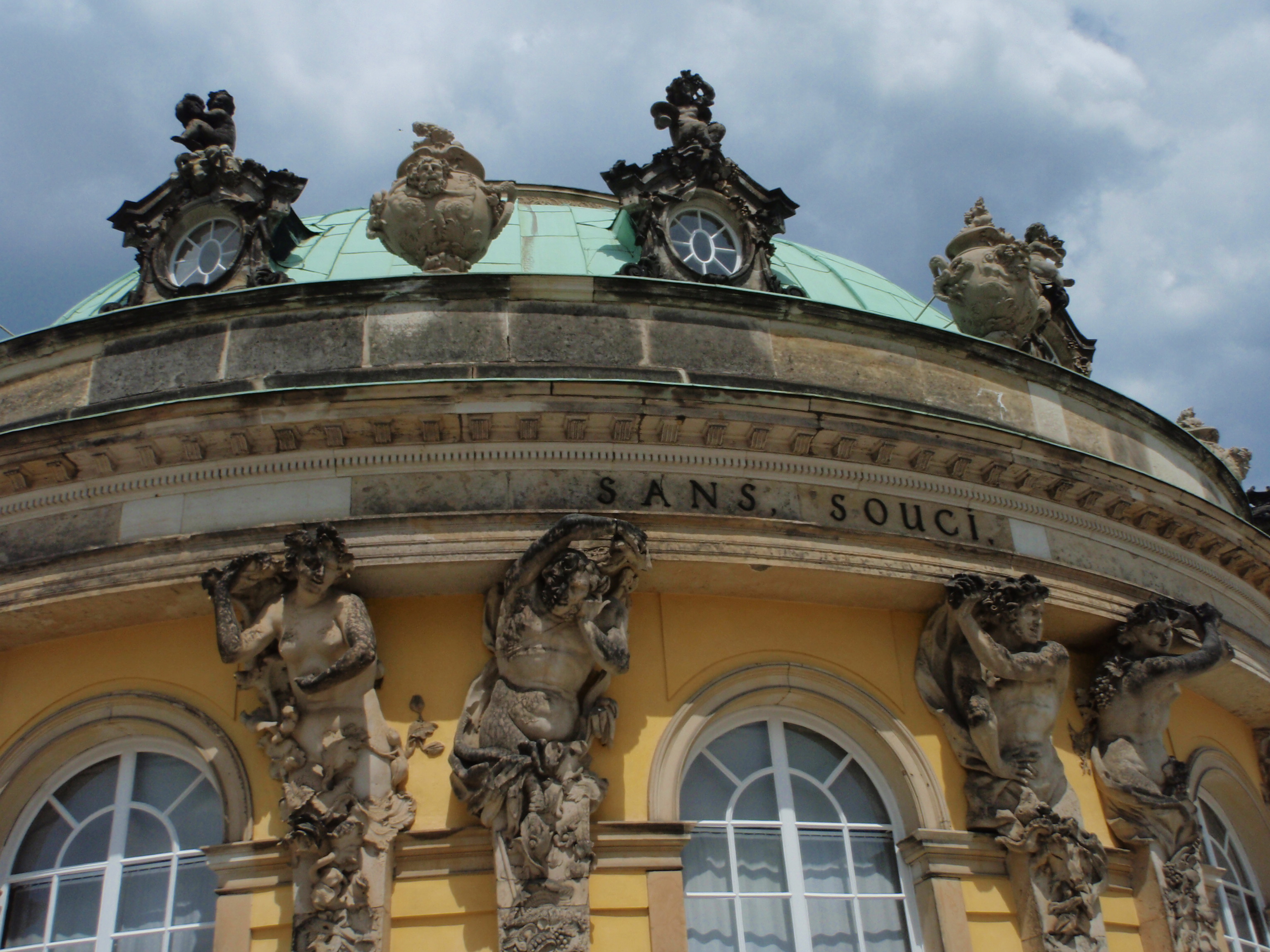 So we toured My Potsdam Tour Group around the castle, then hit a few more castles… These people built castles on a whim. The statue of the winged angel is in front of a castle that William Frederick the second had built for his sister, but she thought it was too dark so she never stayed in it.