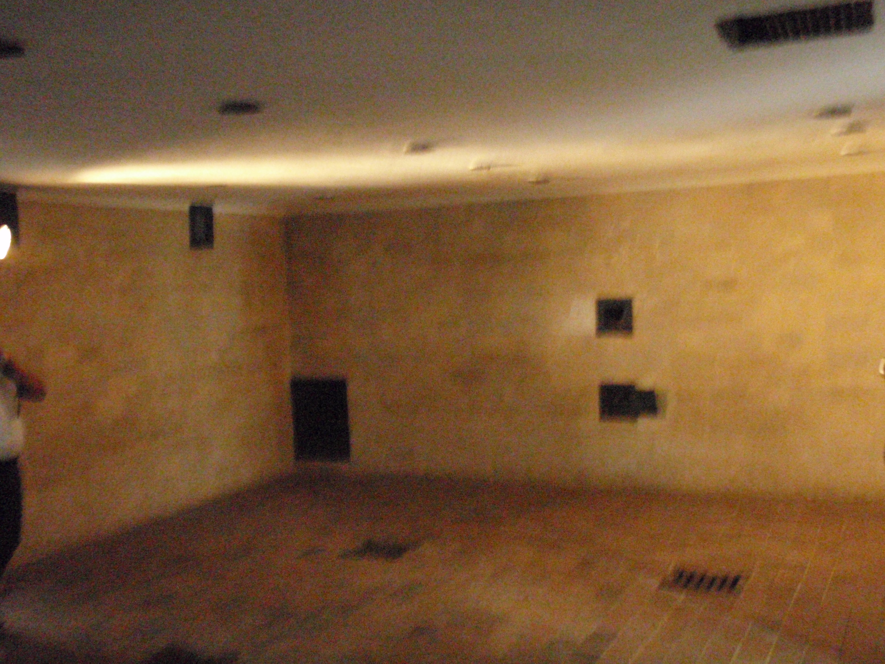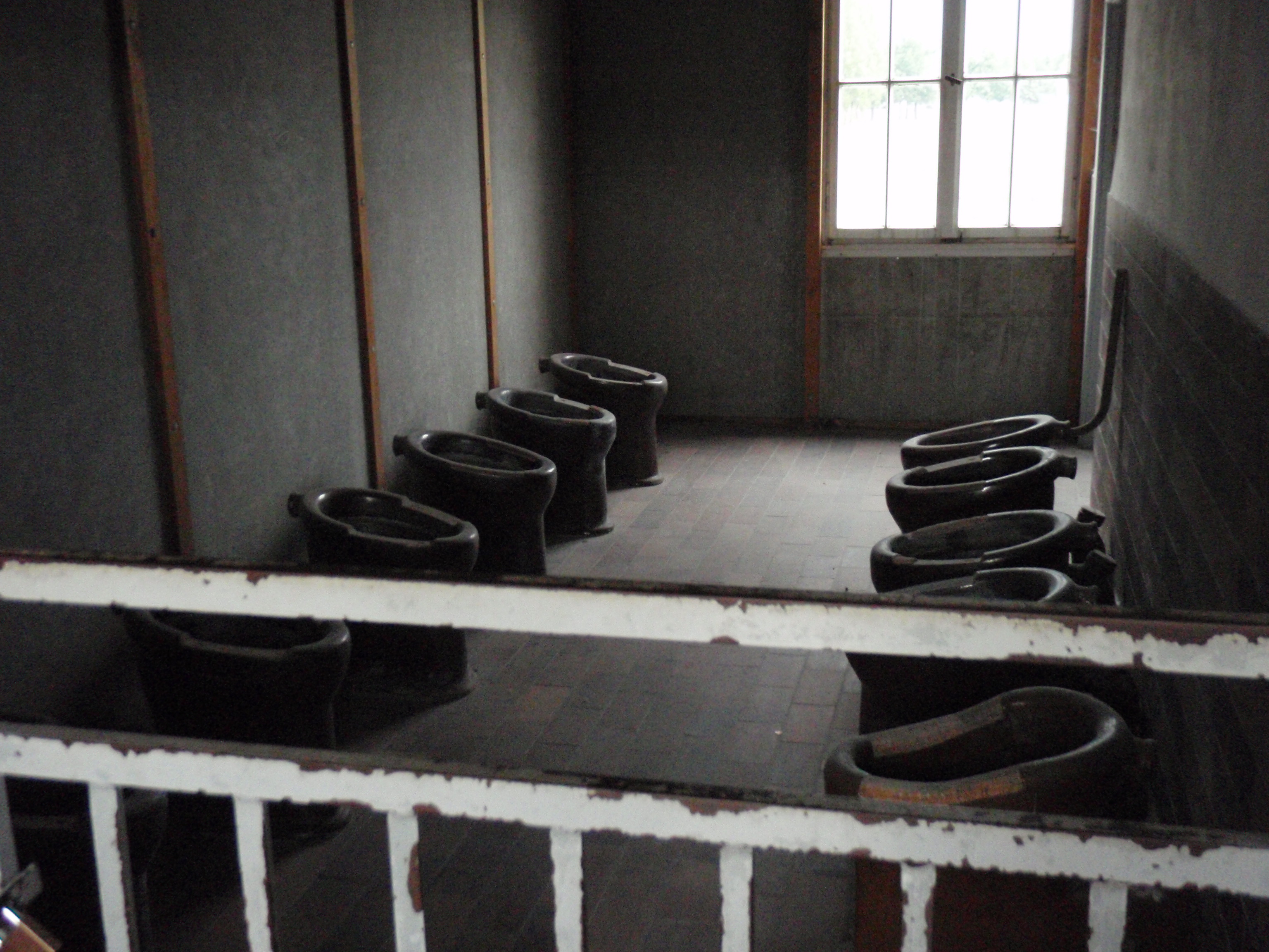 The bathrooms in one of the bunkers. The men (this was a men only camp until 1943) shared ten toilets amongst a thousand occupants.