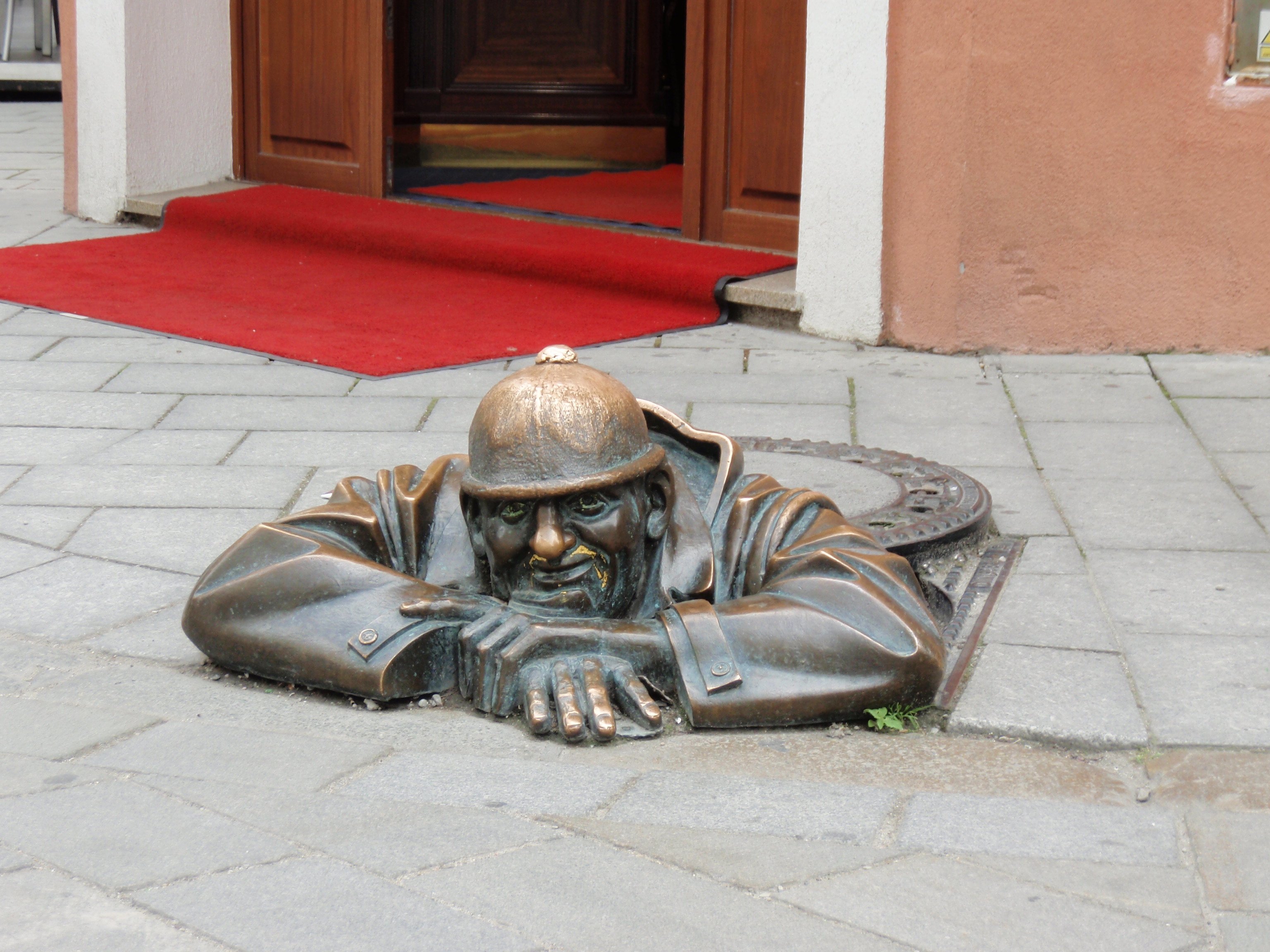 The other thing which bears mentioning about Bratislava, though, is their dedication to public art. I don’t know if you’ve seen those weird compilations which are flying around the internet of odd statues around the globe, but a number of them are in Bratislava (although I did see one in Berlin). I’ll bet you can’t guess what I did when I saw all these really cool statues!