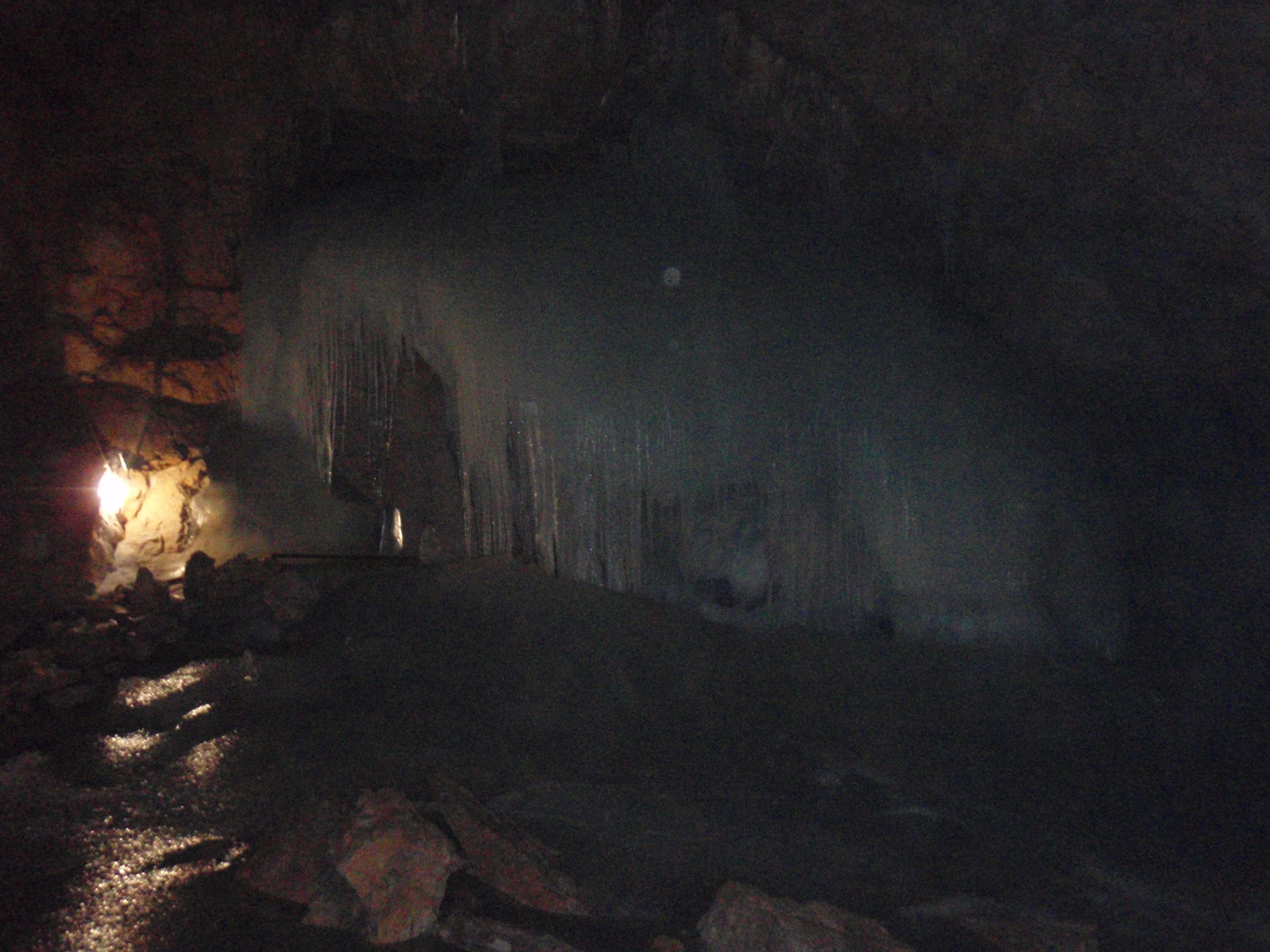 But… getting back to the start of the tour, there’s a small door you must pass through to get inside. The air-pressure differential leads to (literally) ice cold winds of up to 120 kph. Remember all that heat I was talking about a few paragraphs back? Guess what? All gone now! We were freezing! I was just wearing my Grumpy jean jacket and a t-shirt underneath (I didn’t even bring my hat) AND I was elected to carry a lantern (In fact, I ended up with two lanterns because the young family in front of me ended up giving me theirs so mom and dad could each carry one their little girls up and down the 1400 steps). So my hands went numb fairly early on (but I was still a trooper and took pictures when I could). All told, we were in the cave a little more than an hour, maybe 75 minutes, and it was certainly worth it… but cold!