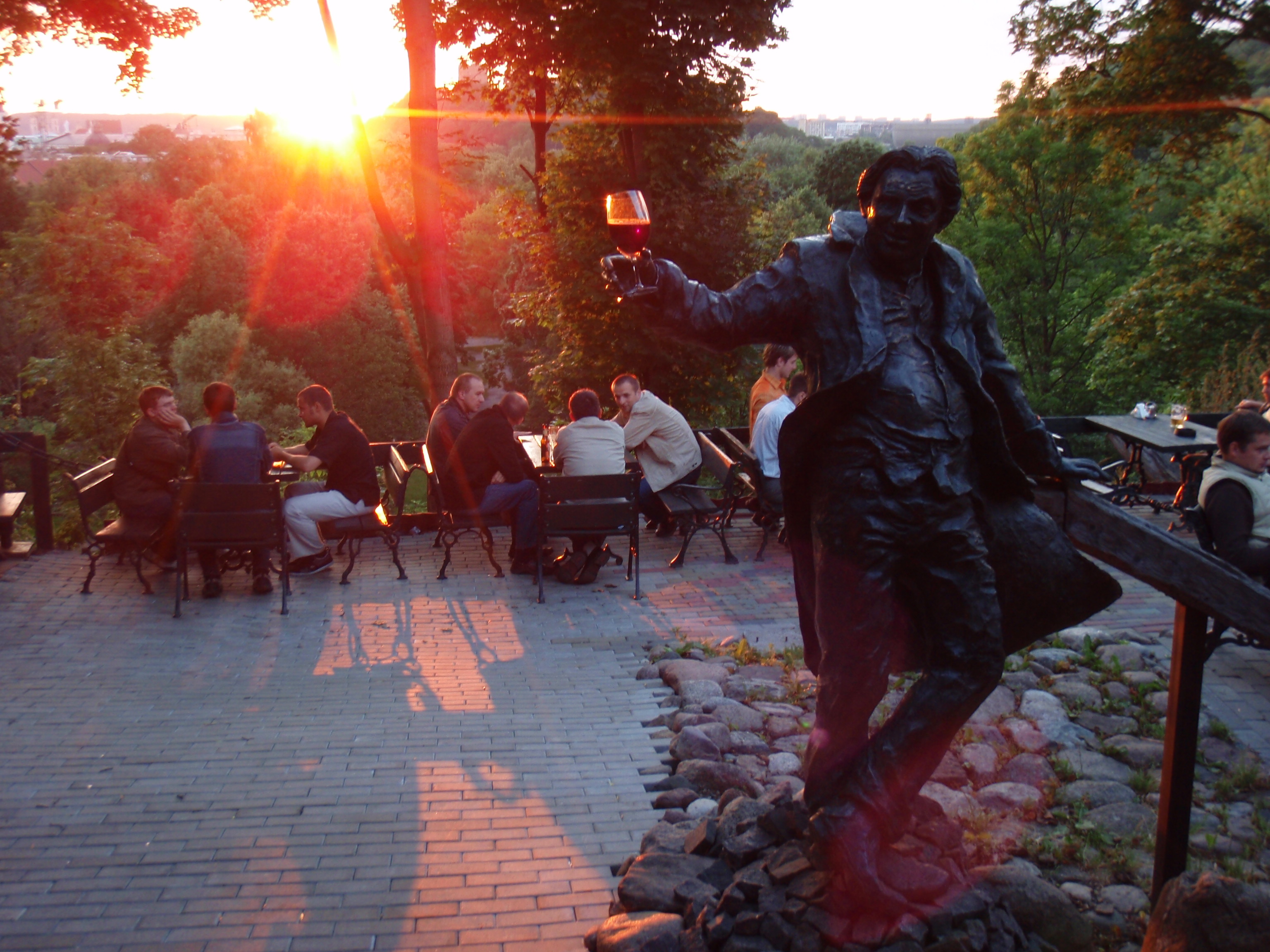 say Teemu Selanne, we were fast friends, talking and jabbering away. A few beers later and we all decided to check out the independent republic. Much laughter ensued and by this point, we were all hungry. Antti’s guide book mentioned a view spot up the street which was attached to a restaurant. So we went looking. The outside wasn’t much, but inside, the place was fantastic! We got a table near the edge and watched the sunset over Vilnius. Then we ate and drank and moved inside when it got cold. At some point, I promised to go to Vassa (I’m gonna head there on the 19th or so, where a party is being organized to meet the American). In the