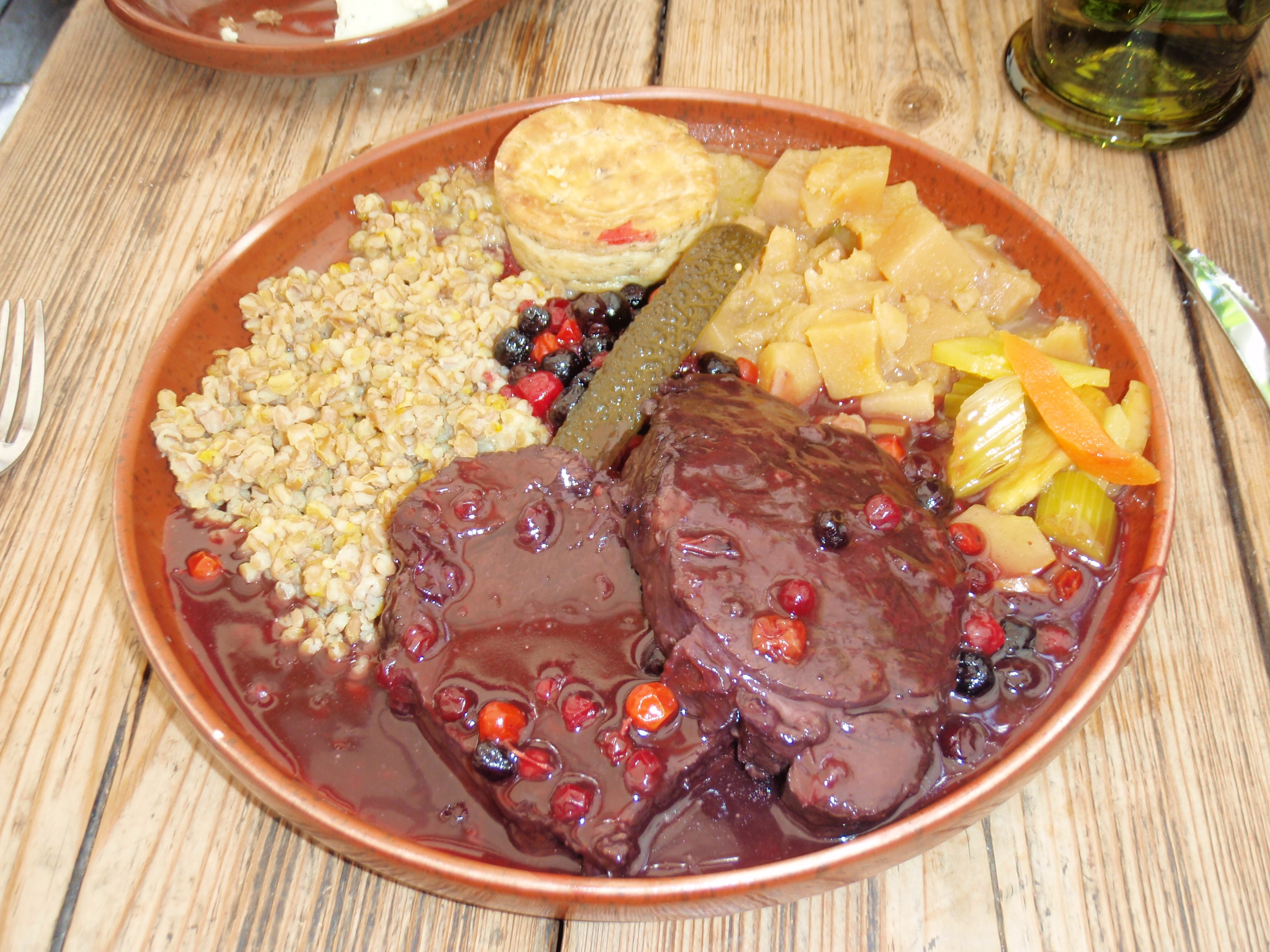 post, I decided to try something I’ve never had before – Bear! It’s a dark meat, a bit gamey, but still quite nice. It was in a lovely sauce. And before that, Piret had