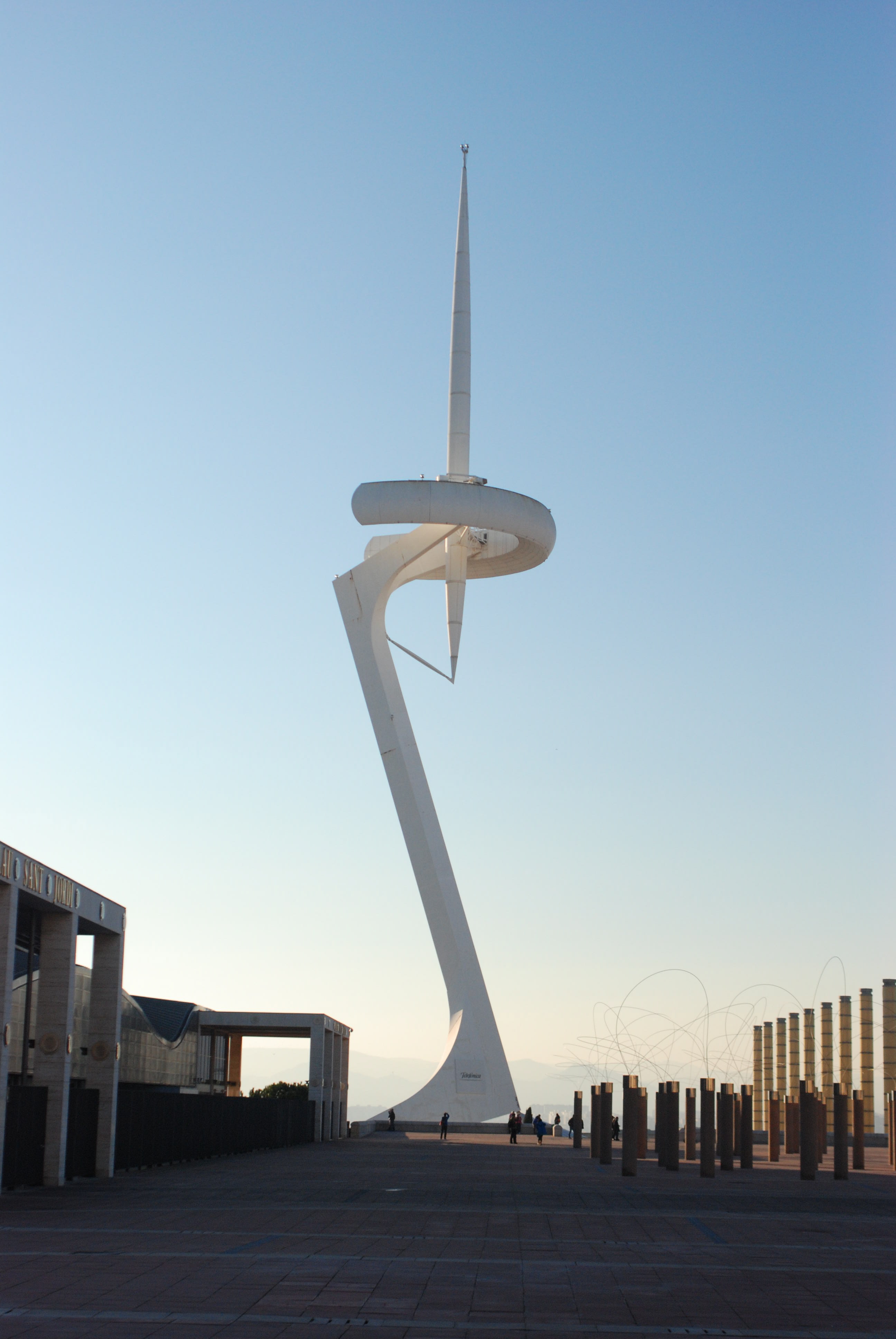 the generally lower buildings. It was a nice place to sit and rest and have a bit of a chat. It was just behind this, though, where the Olympics had taken place a mere twenty years earlier. We could see the track and field stadium and the building which housed the gymnastics and some of the water venues as well as the Montjuic Communications Tower, built to broadcast the games but designed to look like an Olympic torch. Really rather impressive.