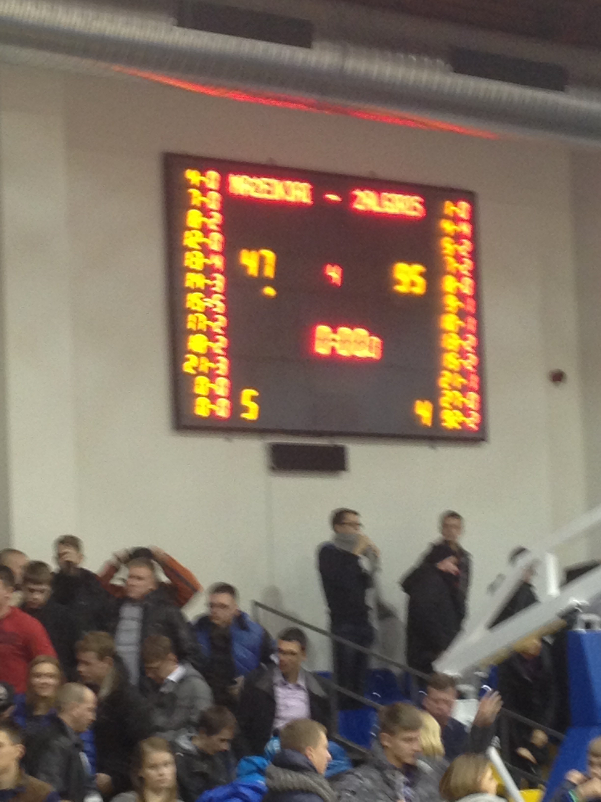 your team on in the face of ridiculous odds. Despite the fact the score at the end of 40 minutes was Mažeikiai 47 – Žalgiris 95, the cheers were just as loud, the flag waving just as fervently, as when we started. The players in that town did their best. They left everything on the court and even though they came up short that night, they were going to be back with the same energy the next game and honestly, that’s why you play. Screw these players holding out for more millions. Anyone who plays sports for a living can learn something from these 10 guys (against the Žalgiris squad of 12). If you don’t love it, shut up and go home.