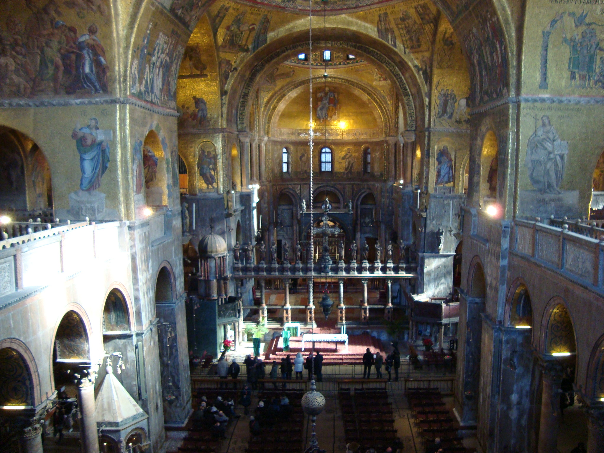 This is the central square of the city, home of several of the major sights, including the Doge’s Palace, the Torre dell’Orologio (Clock Tower) and St Mark’s Basilica, which became our first stop. Like a number of the great churches, the basic entrance is free, but a trip too the interior museum, which included passageway to the upper balcony, had an entrance fee. We paid it and got an up close look at the stunning mosaic work the Basilica is known for. From a distance it looks like normal gold leaf
