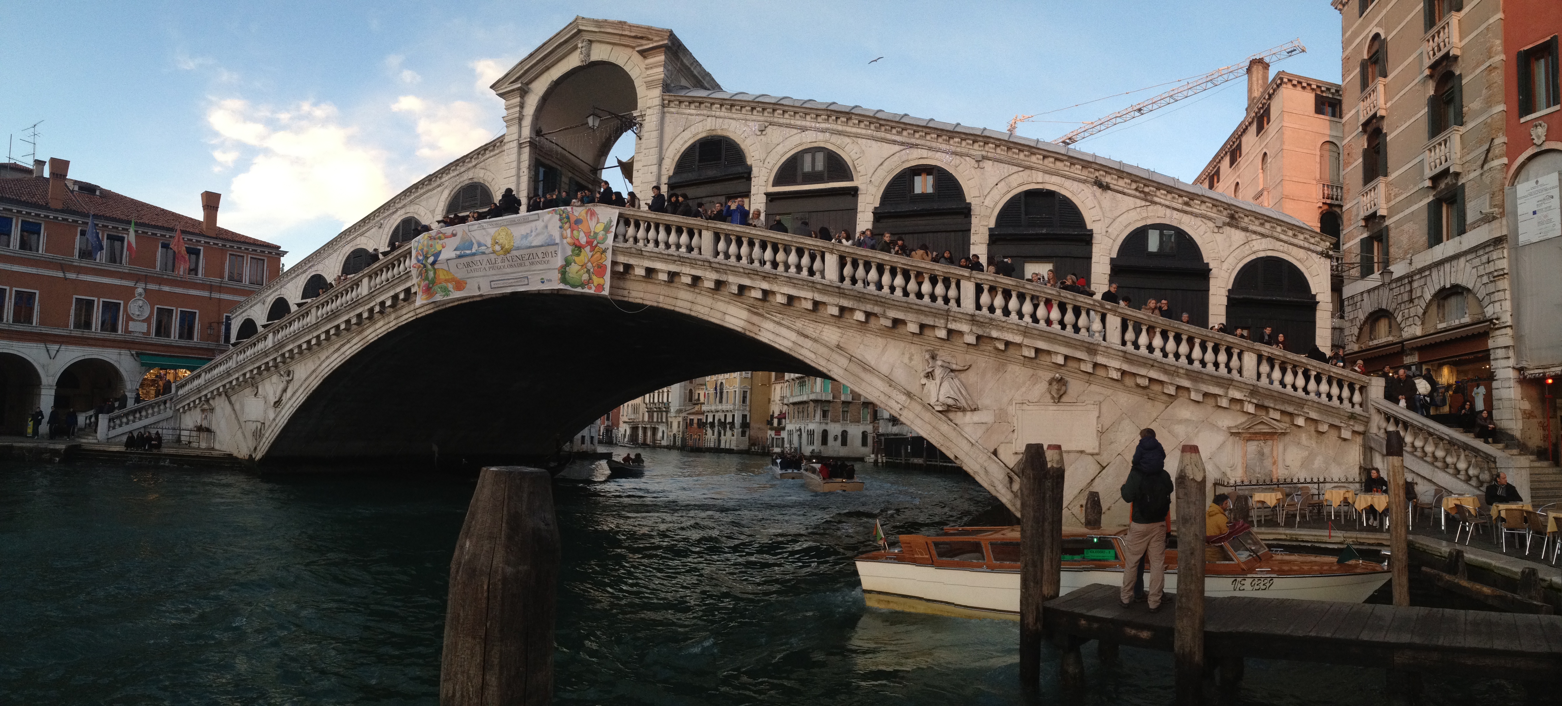 Of course, before you get there, you hit the Rialto Bridge, the oldest bridge spanning the canal. Like the Ponte Vecchio, the Rialto now houses a number of high end shops and even more tourists pushing against each other for the perfect shot of the Canal and the amazingly photogenic city. Naturally, we crossed the bridge before realizing that since the canal double back on itself, we were actually on the side of the canal we needed to be on so we had to cross back before we could make our waty to our destination Piazza.