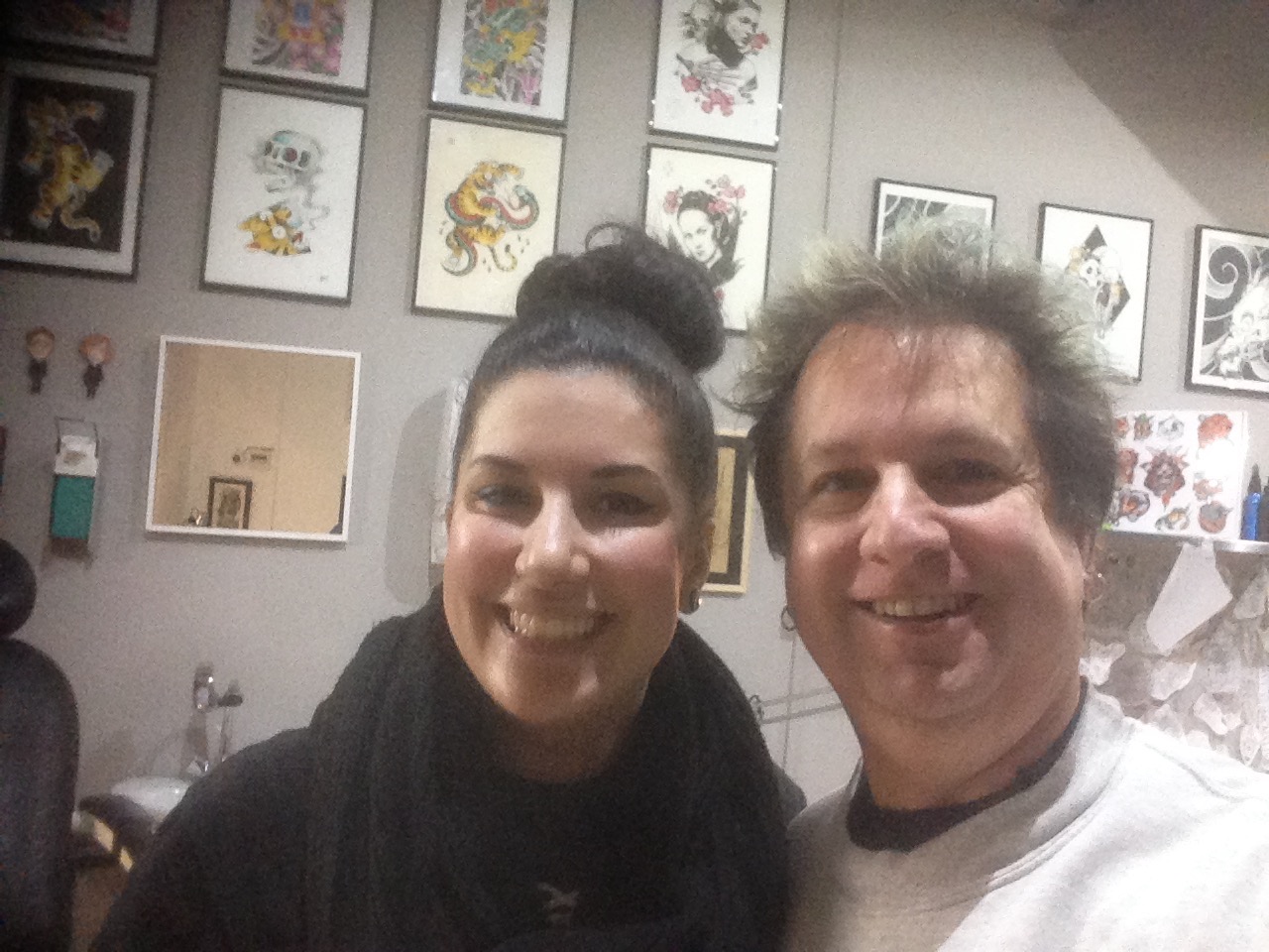there with the Greek barber in Clapham telling me I had the “toughest whiskers he’d ever seen.”). She stopped the tattoo gun and said, admiringly, “You have great tattoo skin. It can really take a pounding.”