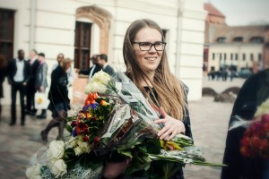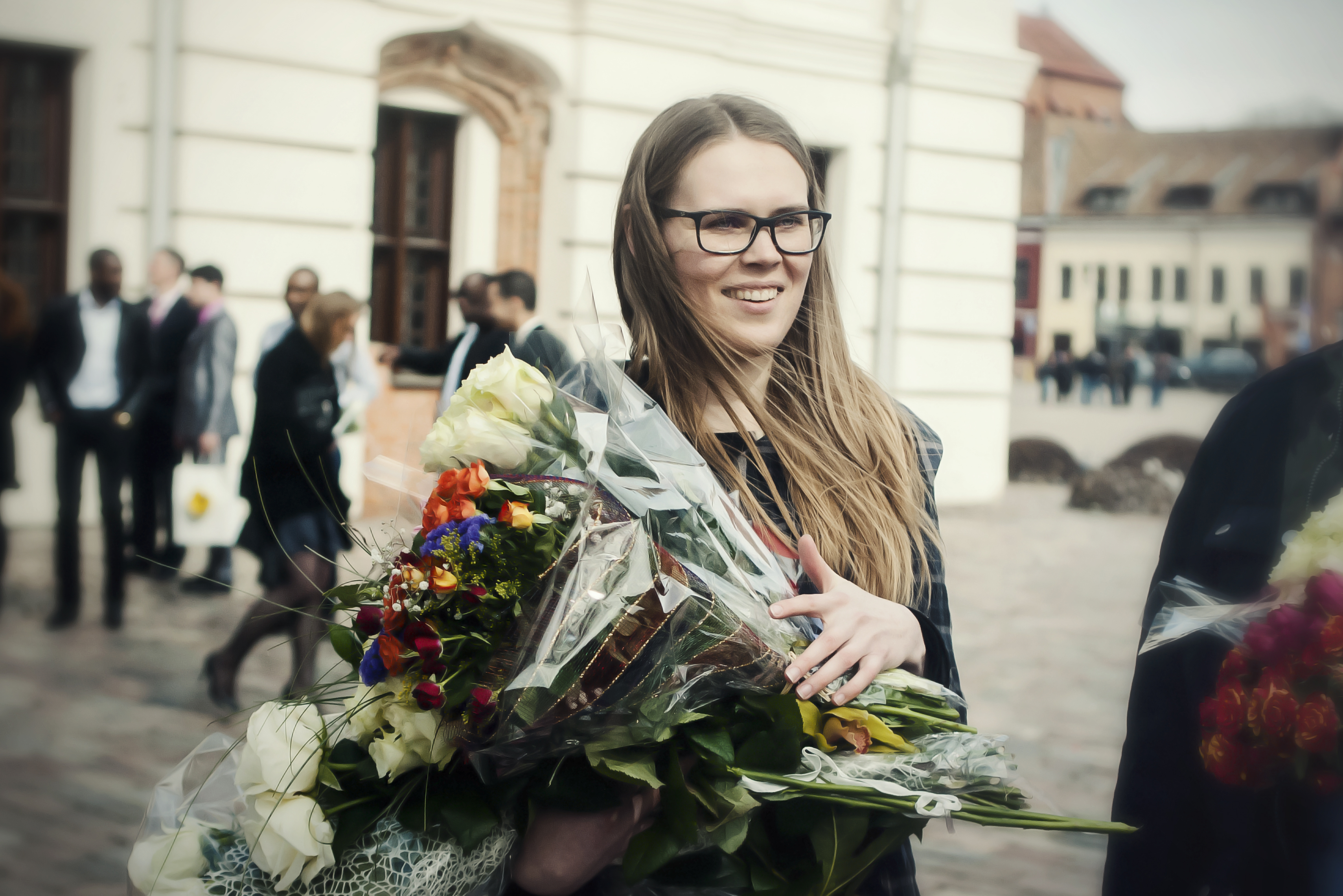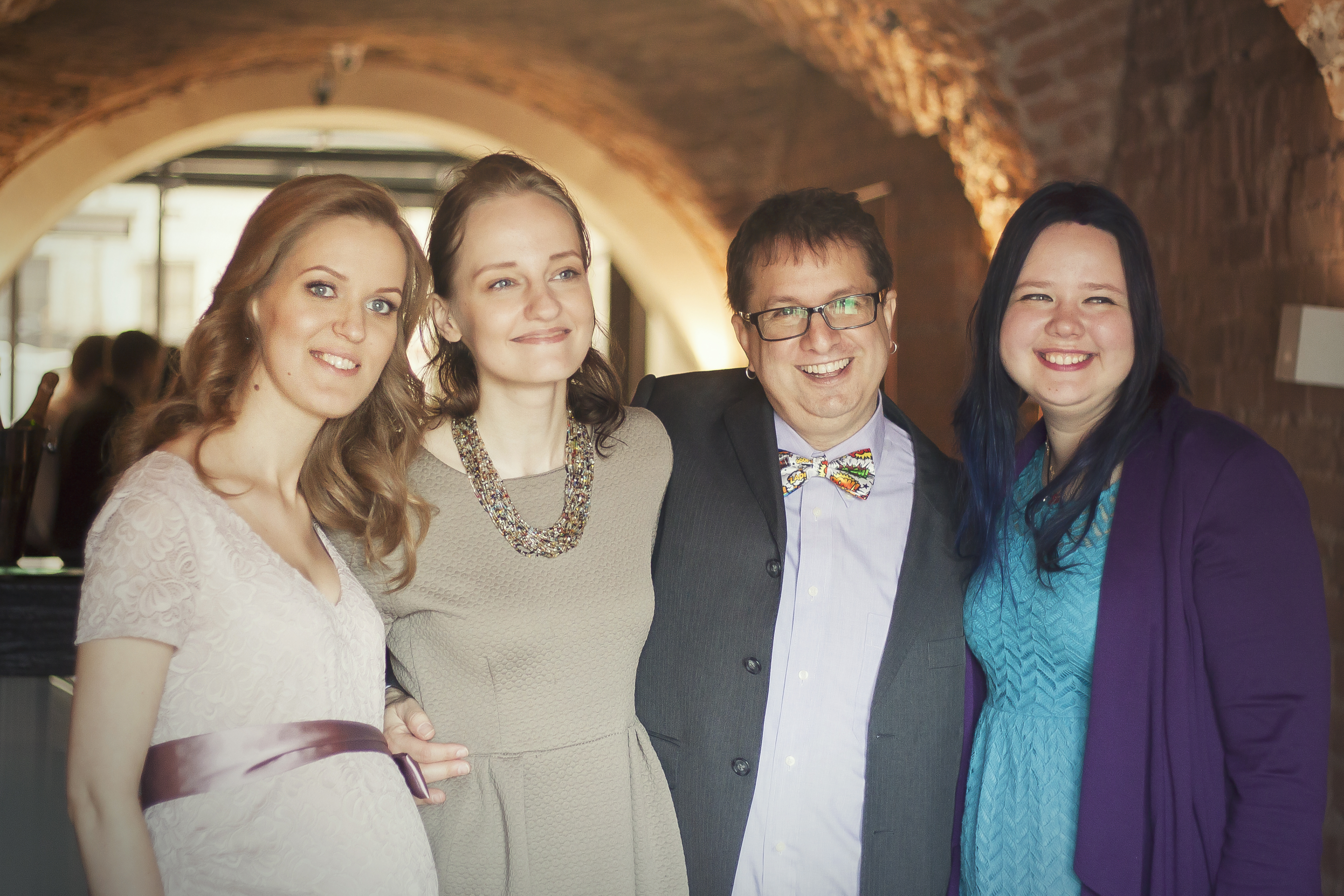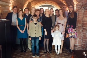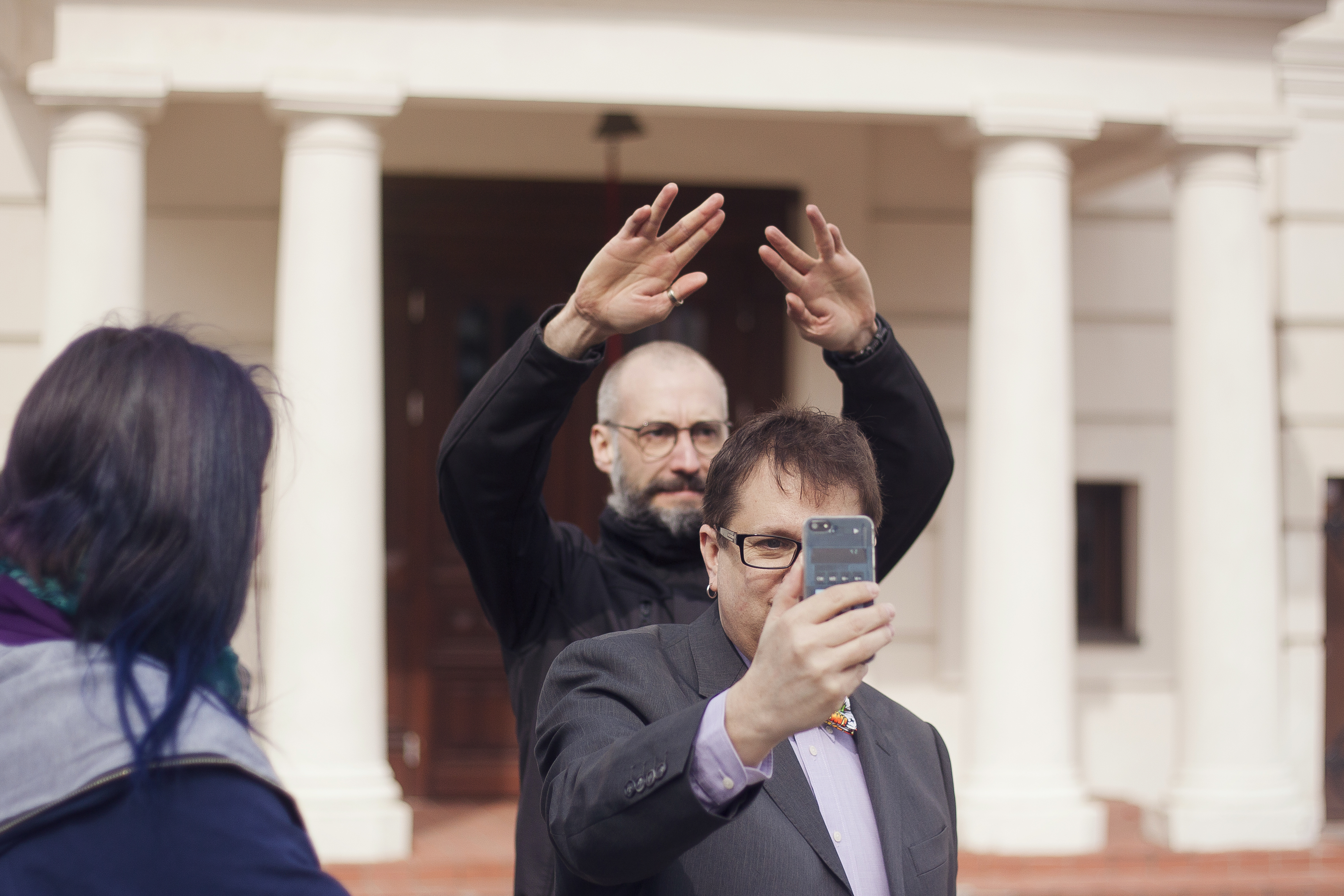 At Rotušė (the old city hall), our ceremony was scheduled for 3:10pm. We knew we were supposed to be there early, because there were ceremonies scheduled every ten minutes and there were things we needed to do beforehand. Arriving at about 2:40, we went in to the lobby and mingled with our group (I only noticed afterwards, while watching the video, there were several friends and colleagues there) and others.