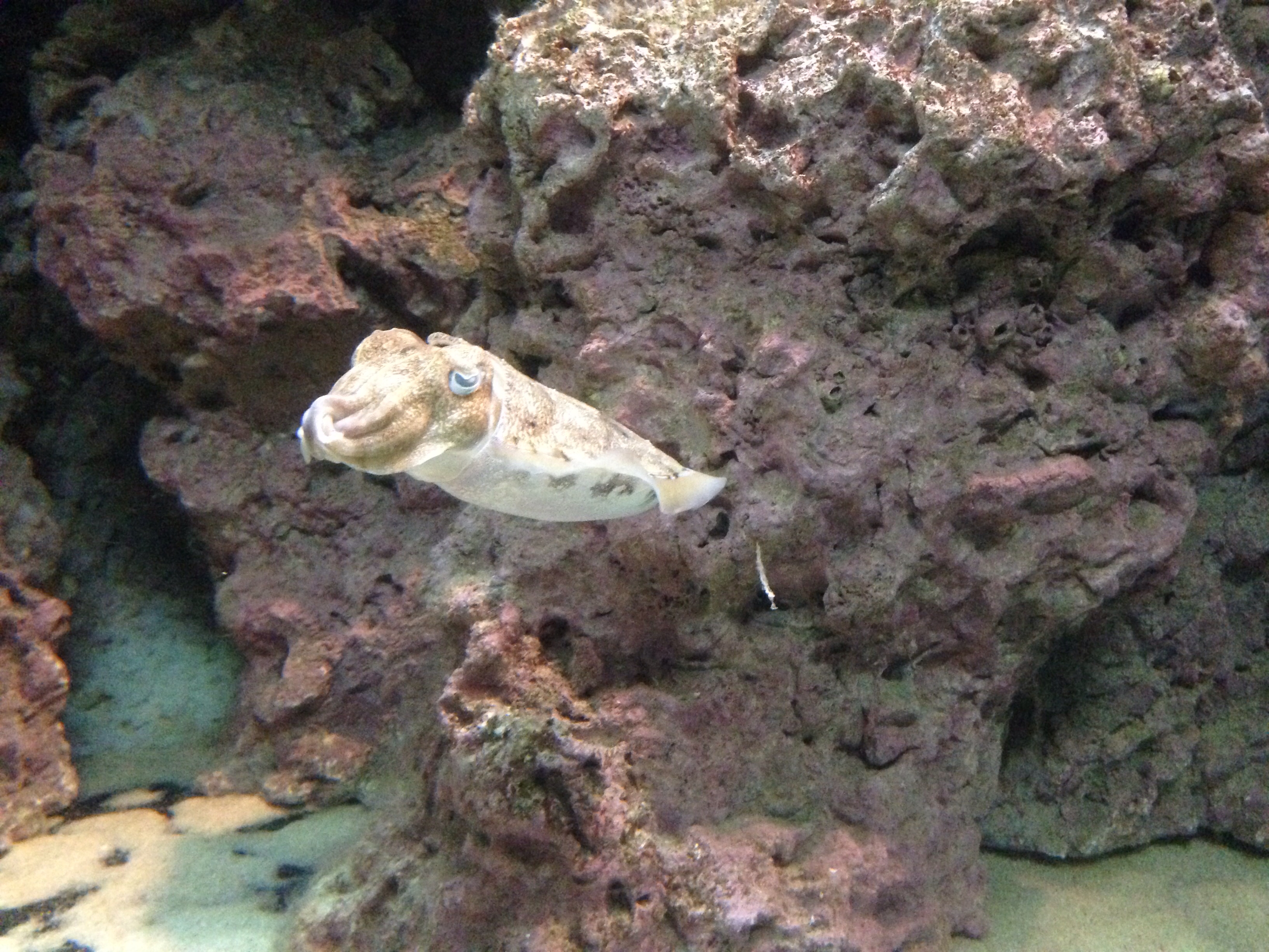 Okay then. I looked over the board and noticed I was in time for the shark and ray feeding so that was an added bonus and would take some time so I bought my ticket and headed inside. The beginning of the exhibit covered desert animals local to the region, including Fenic foxes and bobcats. I would have liked to learn more, but the touch screen information centers near each enclosure were either not working or poorly programmed so once you went to one piece of information, there was no way to go back or continue on. So I watched a cat wander around a small glass enclosed cage for a bit before moving the next exhibit, some snakes or a larger area where a little two footed marsupial thing that looked like a mouse was running around. There was a learning counter where a worker had a hedgehog out and available for petting… so I did.