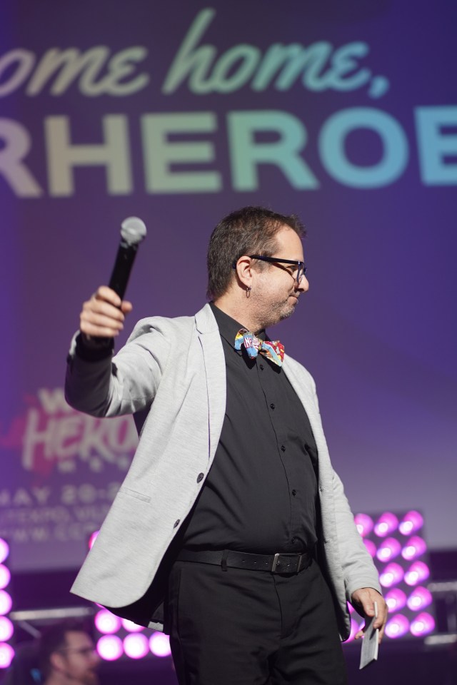Arriving at Litexpo, I took care of a few things before heading over to the green room and meeting up with the rest of the guests, introducing myself and double-checking some of the jokes and comments we had come up with the night before. For example, we knew RJ Mitte had come in with his family and wanted to maybe mention his mom, so needed to clear that with him. Absolutely did not want to tick off a guest first thing. But nope, he was all good with everything and everyone else was game for whatever was going to happen.