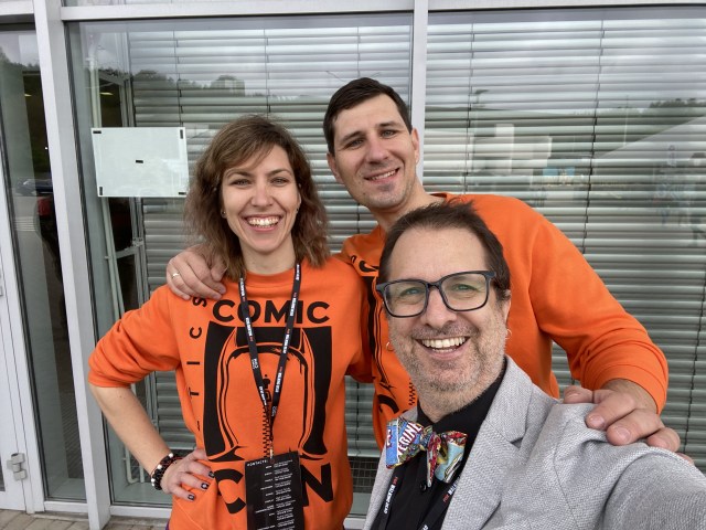 I had a second panel that afternoon, hosting the comic creators Sarah Anderson, Cassandra Calin, and Reza Farazmand, and honestly, a nicer, more insightful group of folks you’ll never find. Of course, considering they all write comics based on their own experiences, being insightful is a bit of a work hazard. Also, in the interest of full disclosure, I wrote an article featuring Sarah a few years back for David Magazine and I interviewed both women via Zoom when we announced their impending arrival to Con.