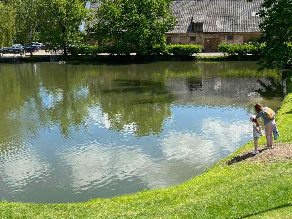 We also saw frogs inflating their throats to make noise and communicate with other frogs across the pond, and we went down a path we’d never gone down before, leading to an area not as neatly manicured as the rest of the gardens. Amidst the overgrown grasses and dandelion fields were also the remains of an old defensive fort and some more ponds.