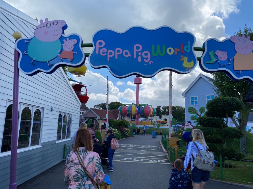 Honestly, today was the day around which this entire trip had been planned. Today was the day we were going to Paultons Park, home of Peppa Pig World. I’m not sure where we first heard about it, but once we did know it existed, Monki was determined to get us there. The park was about 20 minutes from where we’re staying and I was determined to get there early, like when the park opened, not having faith that it wouldn’t be crowded like Legoland was.