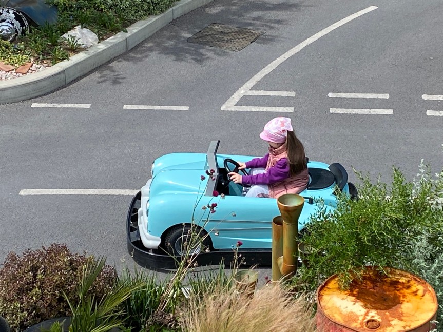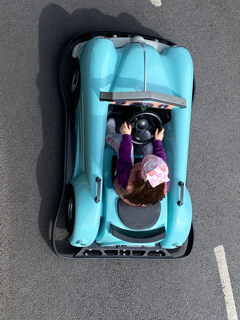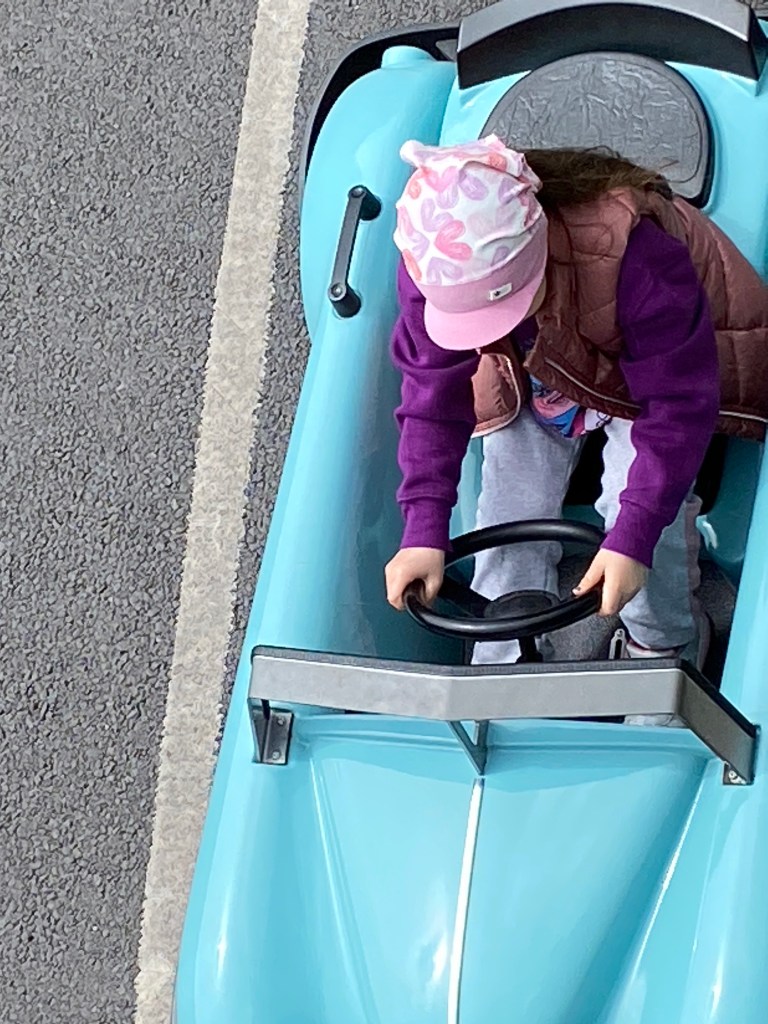 Then it was time for Al’s Auto Academy. Like the driving school at Legoland, this was a self-driving free-for-all. There were a few differences, adults could ride with the kids if the kids weren’t big enough, and the pedals were slightly different, which meant Monki had to pay attention rather than rely on the skills she had learned on the previous ride, but otherwise it was the same. And let me tell you, Monki was all over it! There weren’t as many kids vying for the cars so she was able to make sure she got the color she wanted (blue) and once the ride started, she was off and running! Again, she paid attention to all the rules of the road, gave way when it was the right thing to do, and ultimately had a great time.