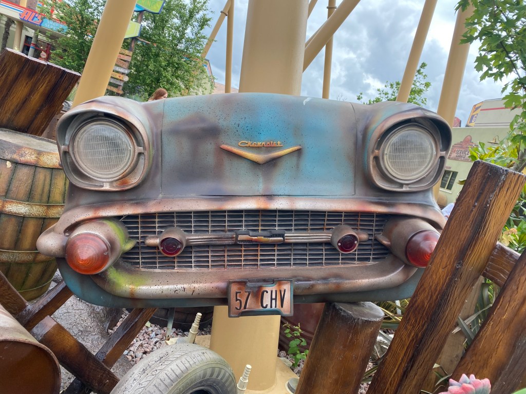Surprisingly, we finished this “world” in just a couple of hours, leaving us plenty of time to explore the rest of the park, starting with Tornado Springs. It’s funny, since Monki has been on a big tornado (especially fire tornado) kick recently, so all she wanted to know was if there were real tornados in the area. There weren’t. Instead, the land was based on a fictionalized Route 66 kind of place (“Set in a midwest desert resort town in the American heyday of the 1950s”).