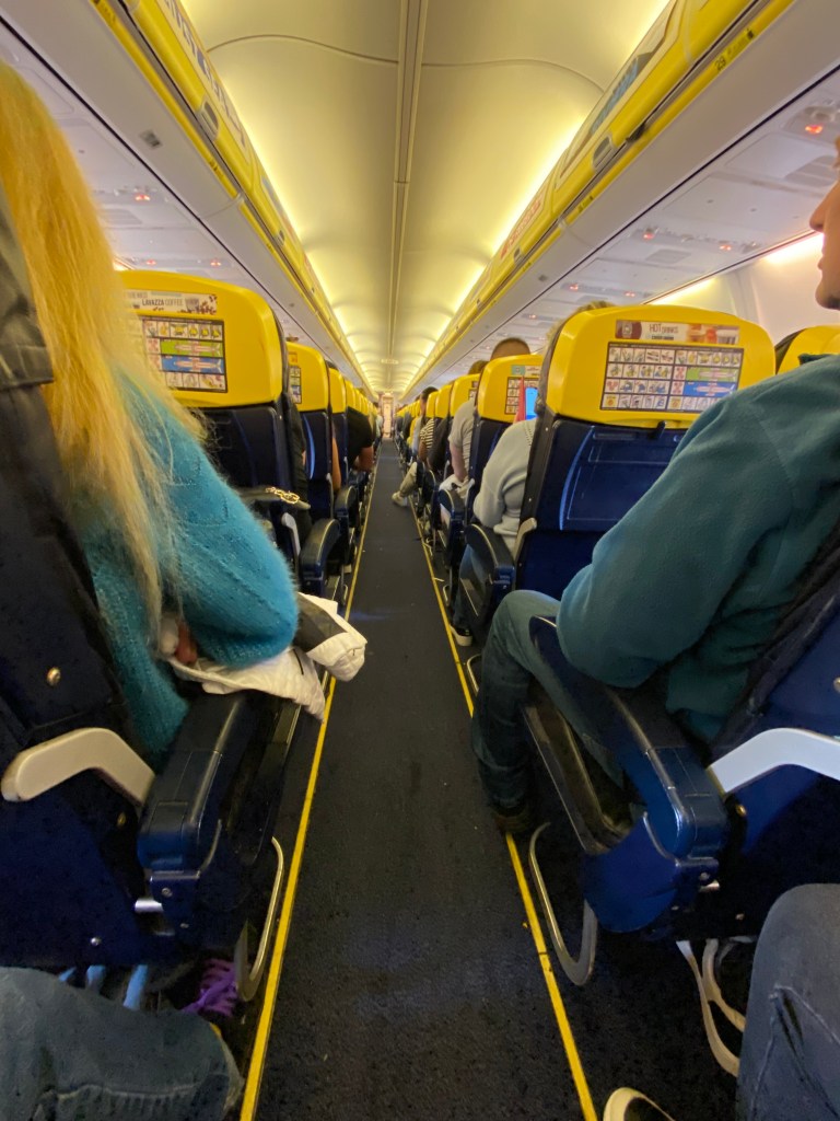 The entire flight was great, no problems until the descent into Kaunas and turbulence hit. Monki said she was feeling it and Rasa was johnny on the spot with the bag. There was a little drop of sick which escaped but almost all of it made it into the bag!