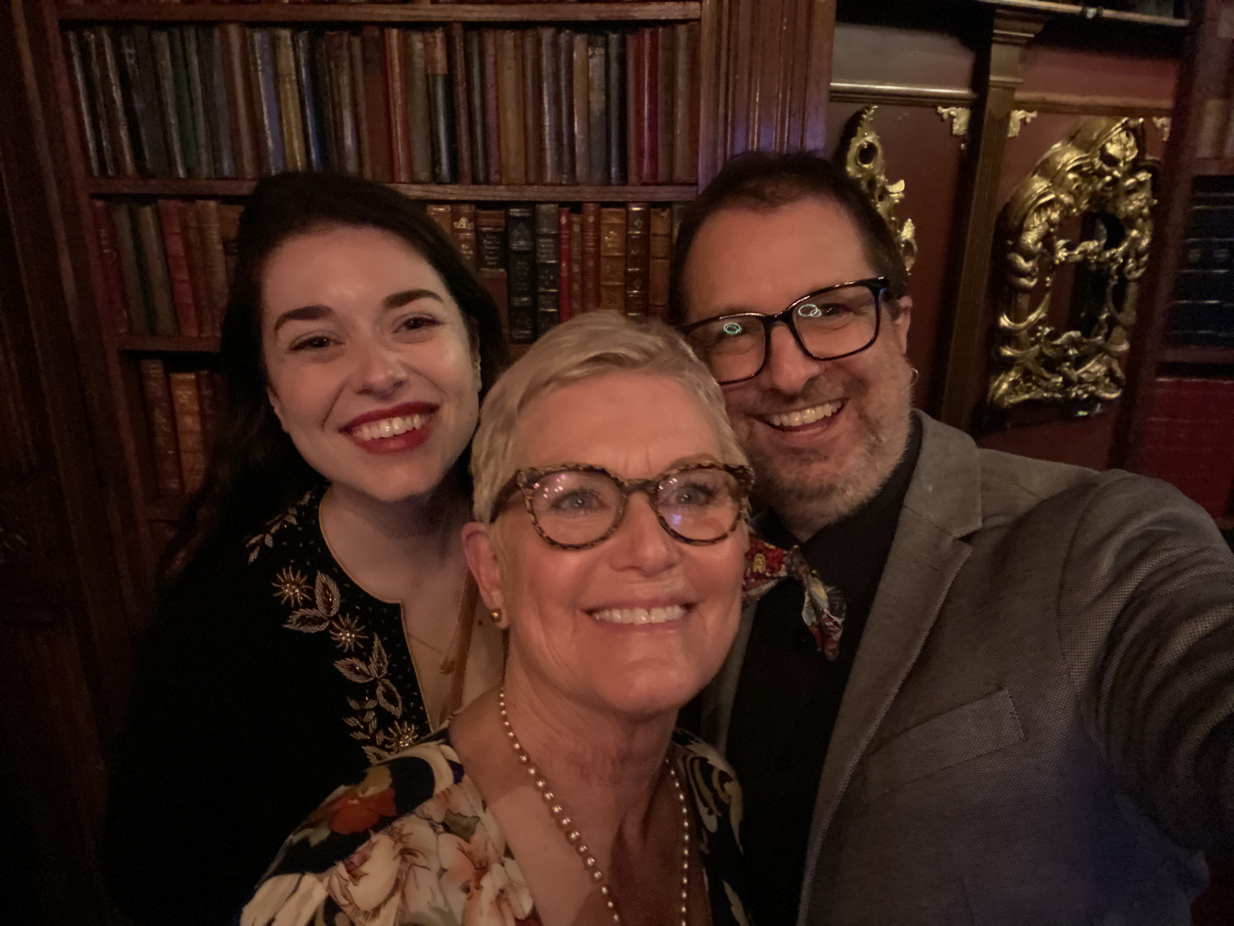 Turns out it was my dear friends Peggy and Willie Etra and their daughter Anna Rose. It was Willie’s birthday and this was a surprise for him coming to the Castle, where they’d never been. When I lived in LA, Willie was the musical director at the Groundlings and I had basically adopted him as a big brother. And while I’ve obviously kept up with them online, the last time I saw the two of them was when I was back in Vegas in August of 2016 and Peggy was performing in Puppet Up at the Venetian and I got to have dinner with them and interview them for a piece on the show. Now here they were! And Anna Rose I literally hadn’t seen since I babysat her when she was an infant.