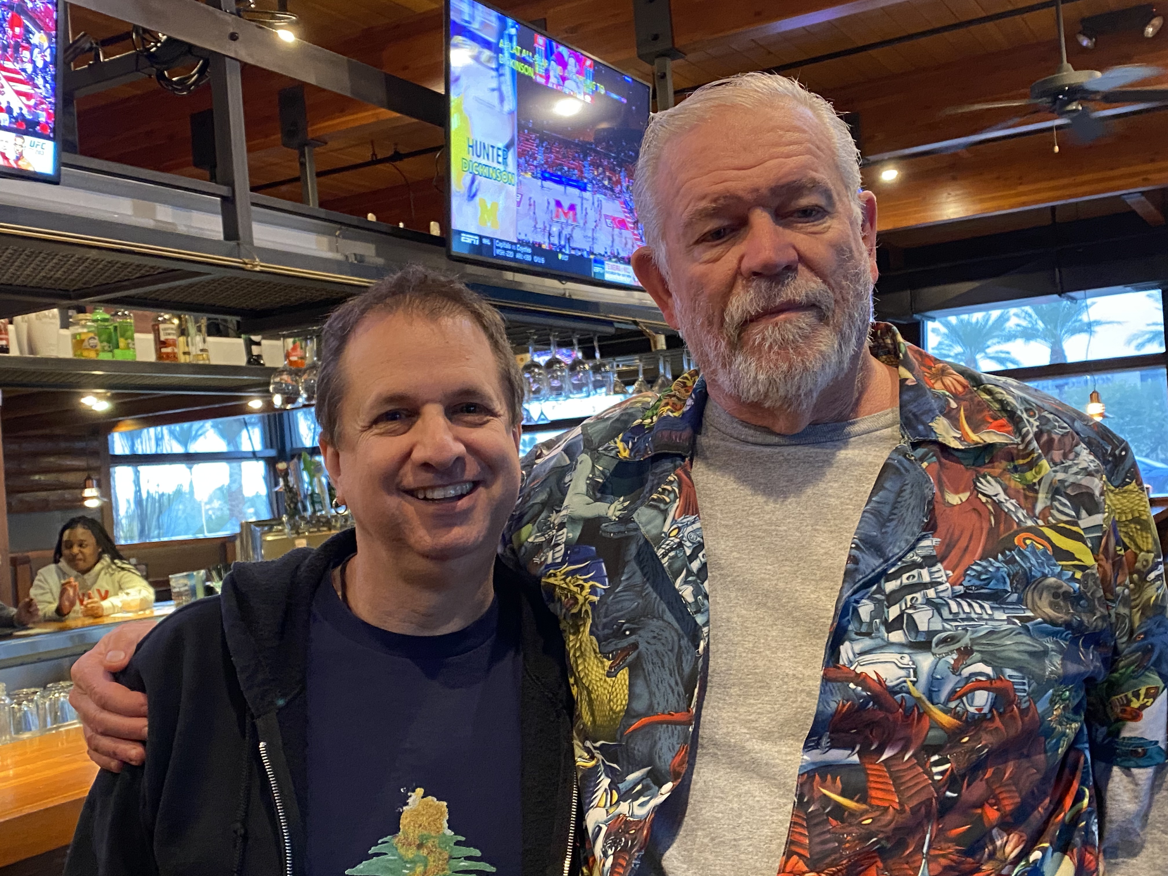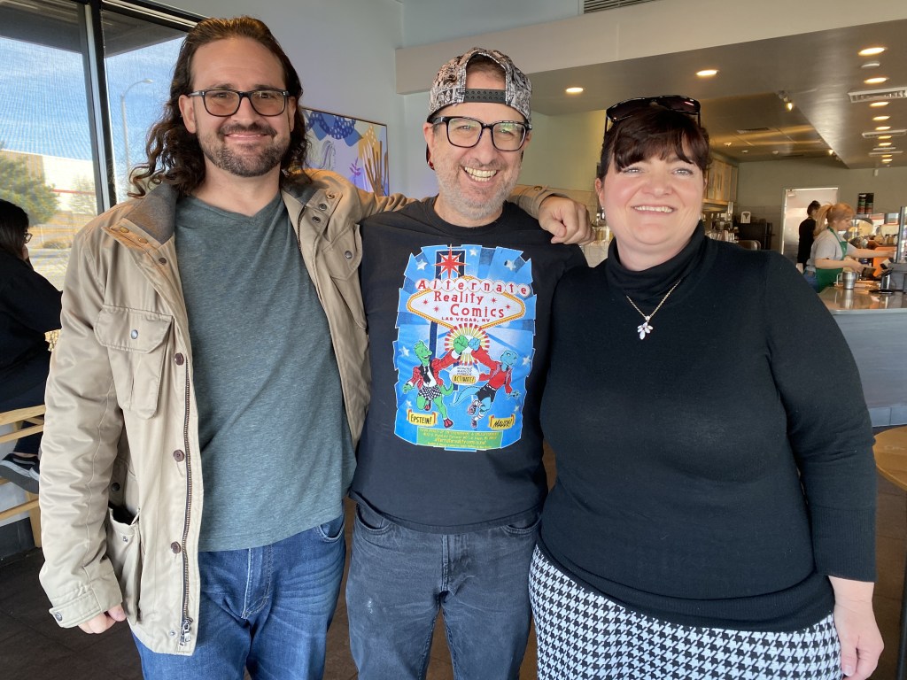 I didn’t have much else to do the rest of the afternoon, so mom and dad asked if I’d like to join them at lunch with several of their friends, including Ronnie Fox, who I play Words with Friends with on a daily basis. While it would be nice to meet them, it really wasn’t my scene. But then, when I asked where lunch was, it turned out it was around the corner from my friend Jim, who I was supposed to meat with earlier in the visit but timing was bad and it never happened. I sent him a quick text and sure enough he could make it! So I went with and got to meet the friends and then was able to sit and have a great conversation about the university and a catch up on old friends from the MFA program (which is where I met Jim). Everything works out. Also, I need to mention, Jim gave me a great compliment earlier in the week. When I posted a picture of me standing outside the T-Mobile Arena celebrating the Golden Knights Victory, Jim posted that “I’d rather watch paint dry, but your capacity to enjoy absolutely everything is infectious.” I’ll take that!
