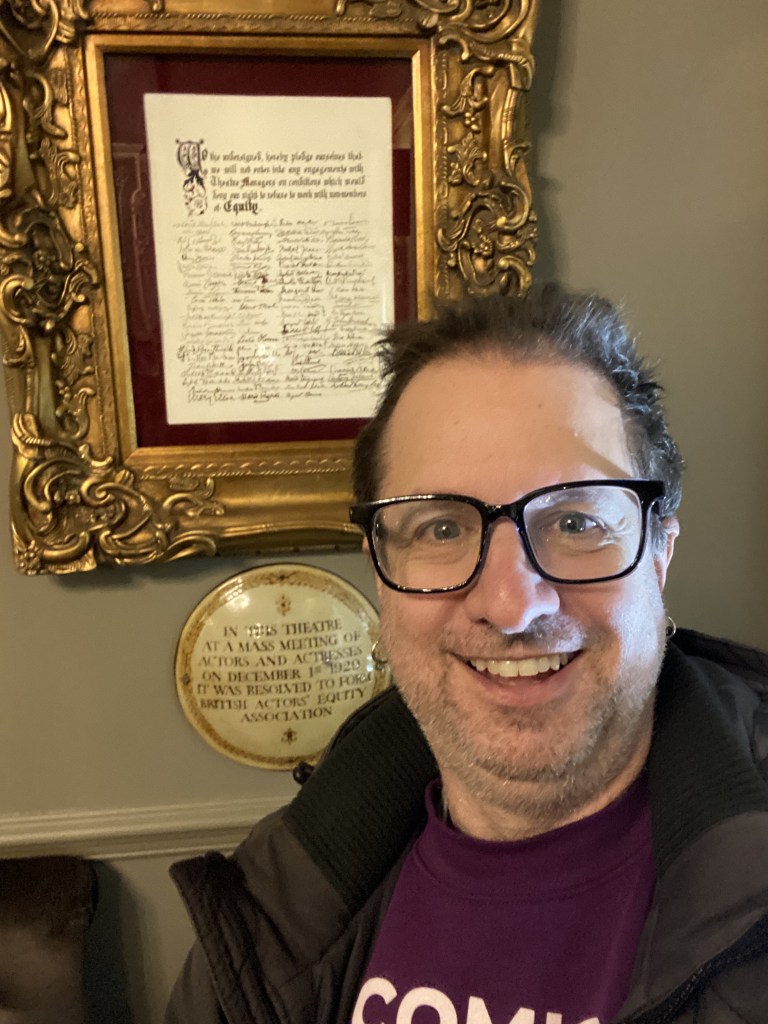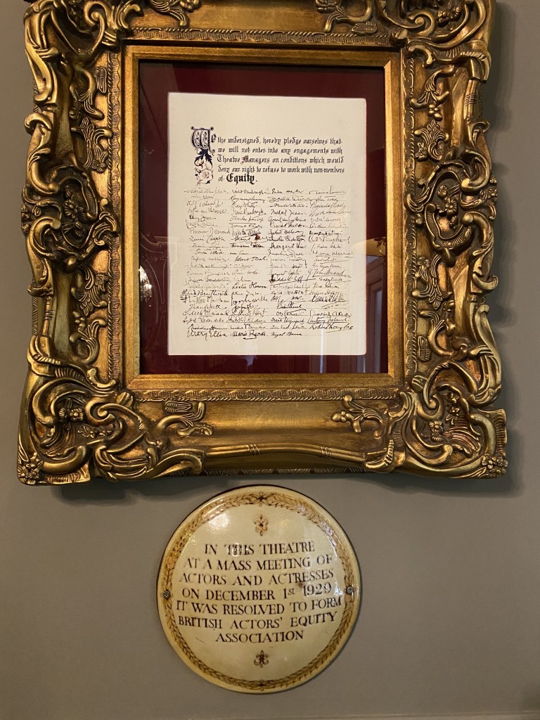 So I came back into the city from Watford and waited for her in a Caffè Nero across the street from the theatre (where the guy working was having a particularly friendly night as he filled up the stamps on my loyalty card when I only bought one coffee – or maybe he was flirting and I didn’t catch it). Lin arrived and we headed in, with her saying hi to everyone as we made our way around the building (we did try and get programs but since the show was closing in London just a few days later, they were out and hadn’t needed to order more). The Duke of York’s holds a special place in theatre history, too, as it’s the place where Actor’s Equity was founded (and where Ian McKellen made his West End debut).
