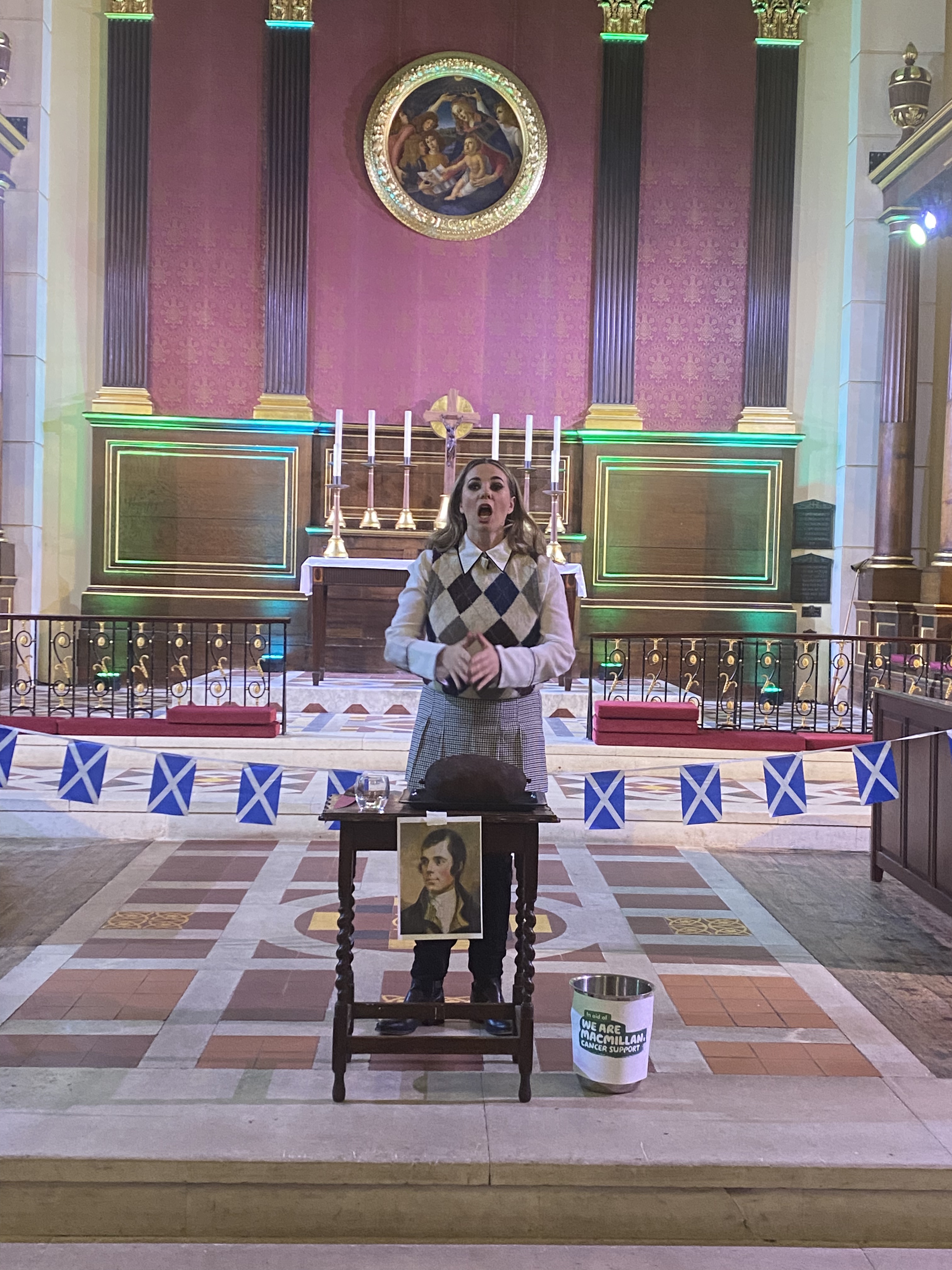 Since this was happening on January 26, the “cast thing” was actually a Cèilidh, a celebration of Burns Night (which is January 25 and a celebration of Scottish Poet Robbie Burns’ birthday) organized by Mairi Barclay, the actor who played the Monkey in the show, and held at The Actor’s Church in Covent Garden.
