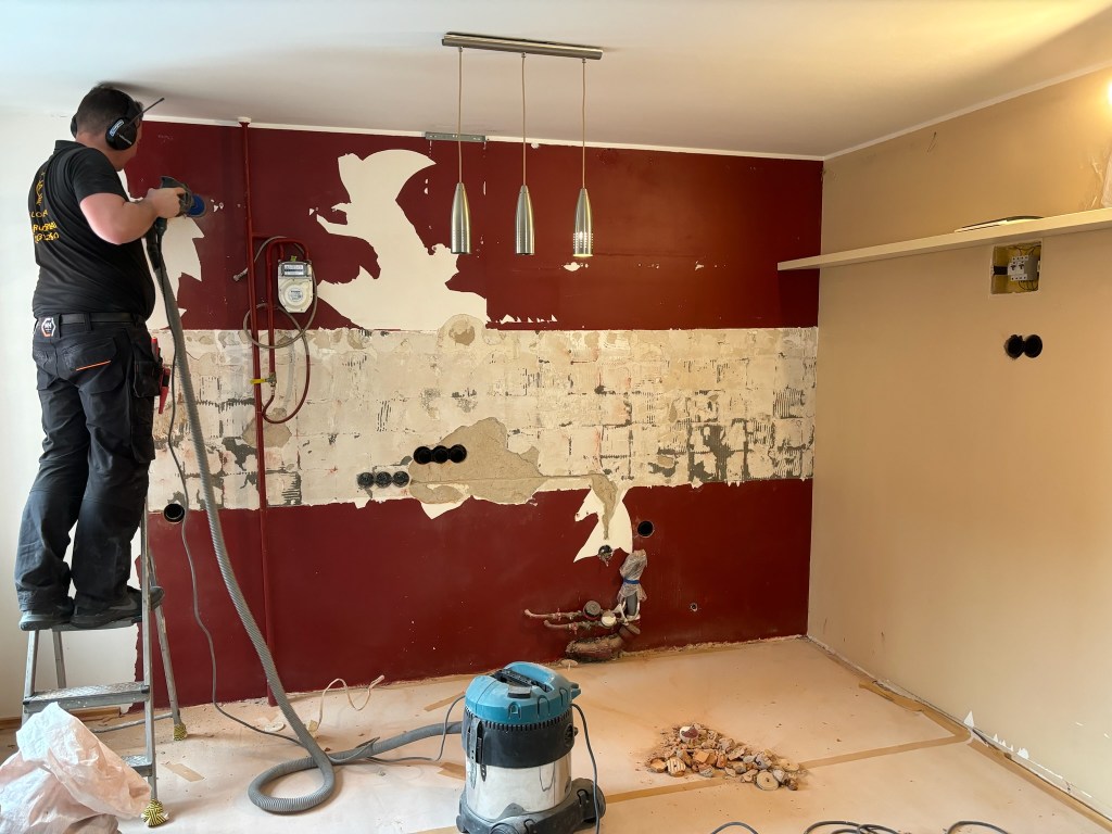 In the end, the entire room was empty and ready for Mindaugas, our drywall and paint guy, to come in and get the living room ready. We’ve already ordered a new sofa and entertainment center, three new ceiling lights (all of which take normal, screw them in yourself light bulbs – something the old lights in these areas did not) and the entry closet. Most of which will be here by the end of February (except the sofa, which is coming in March).