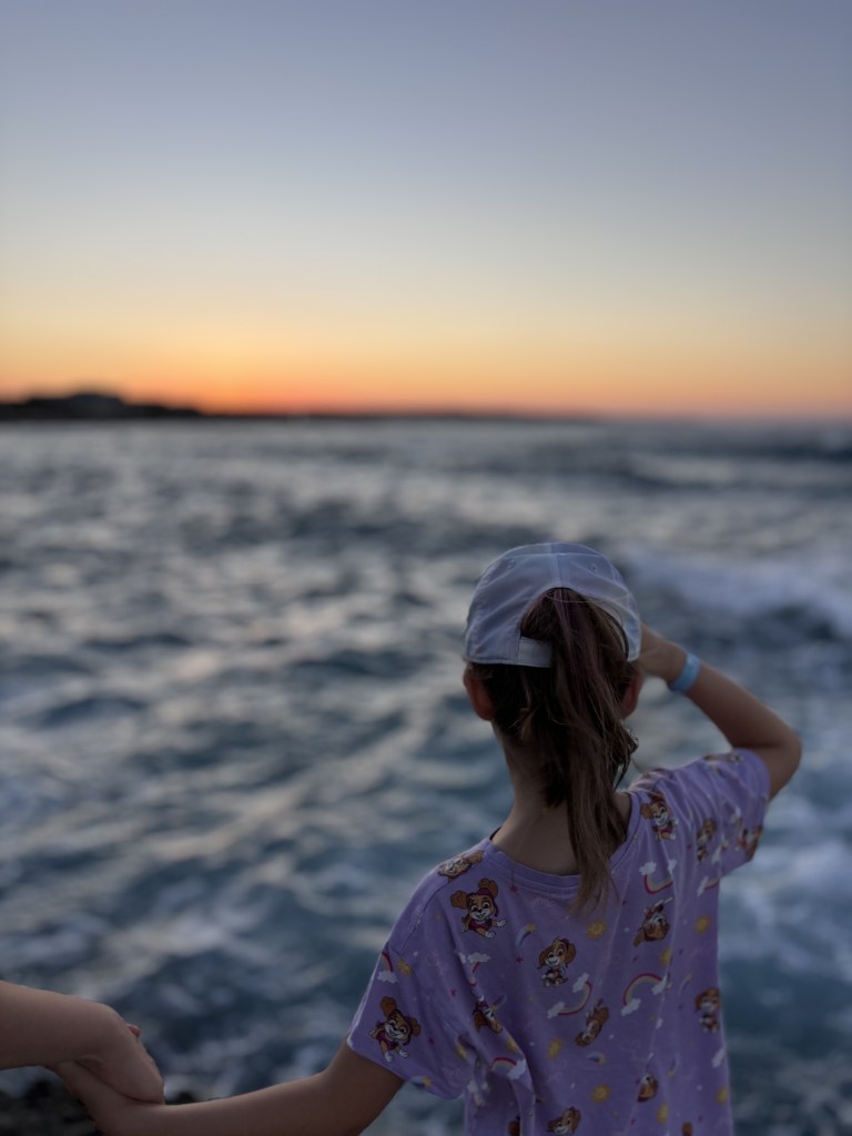 It was on the ground floor and had a patio with an amazing view of the ocean. We dropped our bags and went to find the buffet to grab a bite. After dinner, we were all a bit tired, so we ended up back in the room, with Monki and I hanging out on that patio as the sun went down, playing games and reading, and really trying to settle into vacation mode.
