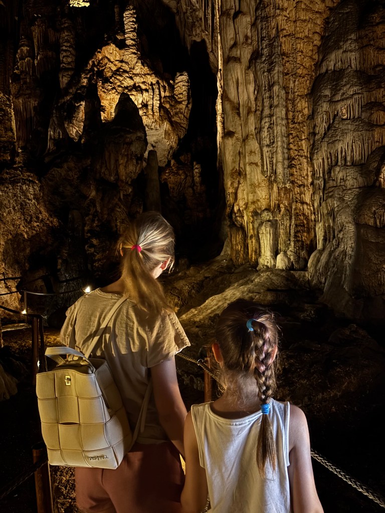Unlike the journey last year when Mom, Dad, and I went to the Cave of Zeus, the walk to the entrance was pretty easy. Going into the cave, though, was another matter. Neither Monki nor Rasa had ever been to a cavern like this and so there was a little trepidation from the little one about going in (something about darkness and spiders). It took a little while but eventually, we all did climb down into the darkness (while not as many stairs as into the Cave of Zeus, it was still not an insignificant number).