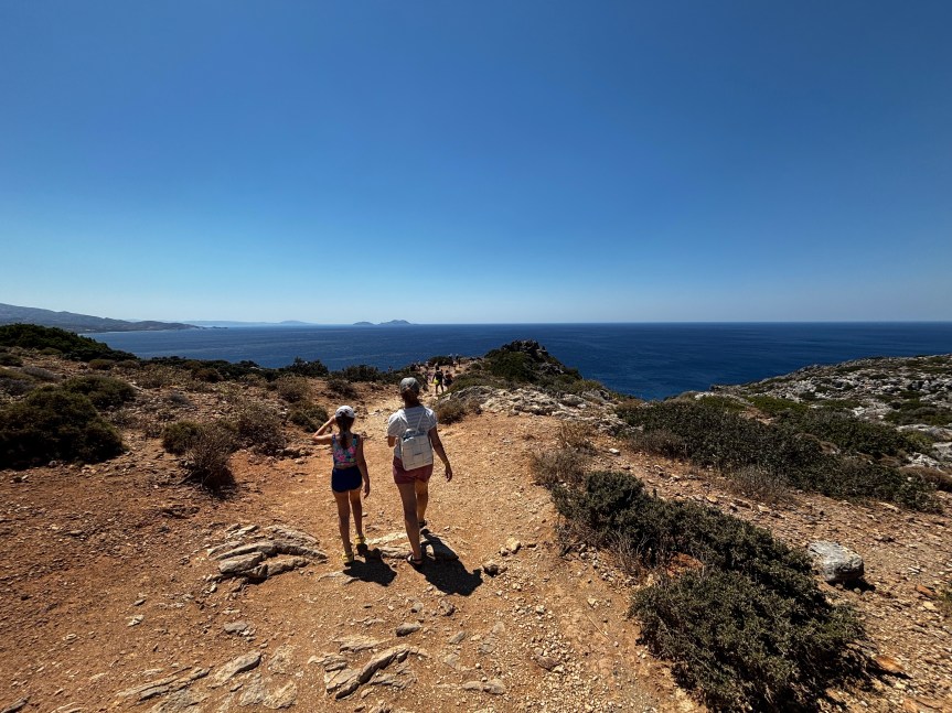 As we discovered on our way to the Melidoni Cave, these roads are not for the faint of heart, and Rasa certainly proved more than equal to the task. Monki was in the back seat, literally listening to the same three songs (from the K-Pop Demon Hunters Soundtrack) on her headphones so our drive was punctuated by her random singing. Since we didn’t have a set agenda, when we saw a few cars stopped at an overlook for the Kourtaliotiko Gorge, we decided to stop as well.