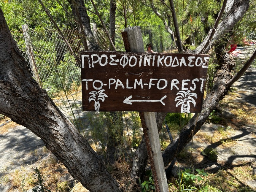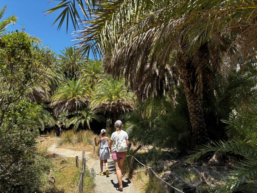 The GPS directions to the Preveli beach parking area kept getting sketchier, with Rasa exclaiming at several points “Oh, no way!” But eventually, we did find the lot and left our car to begin the trek to the beach.